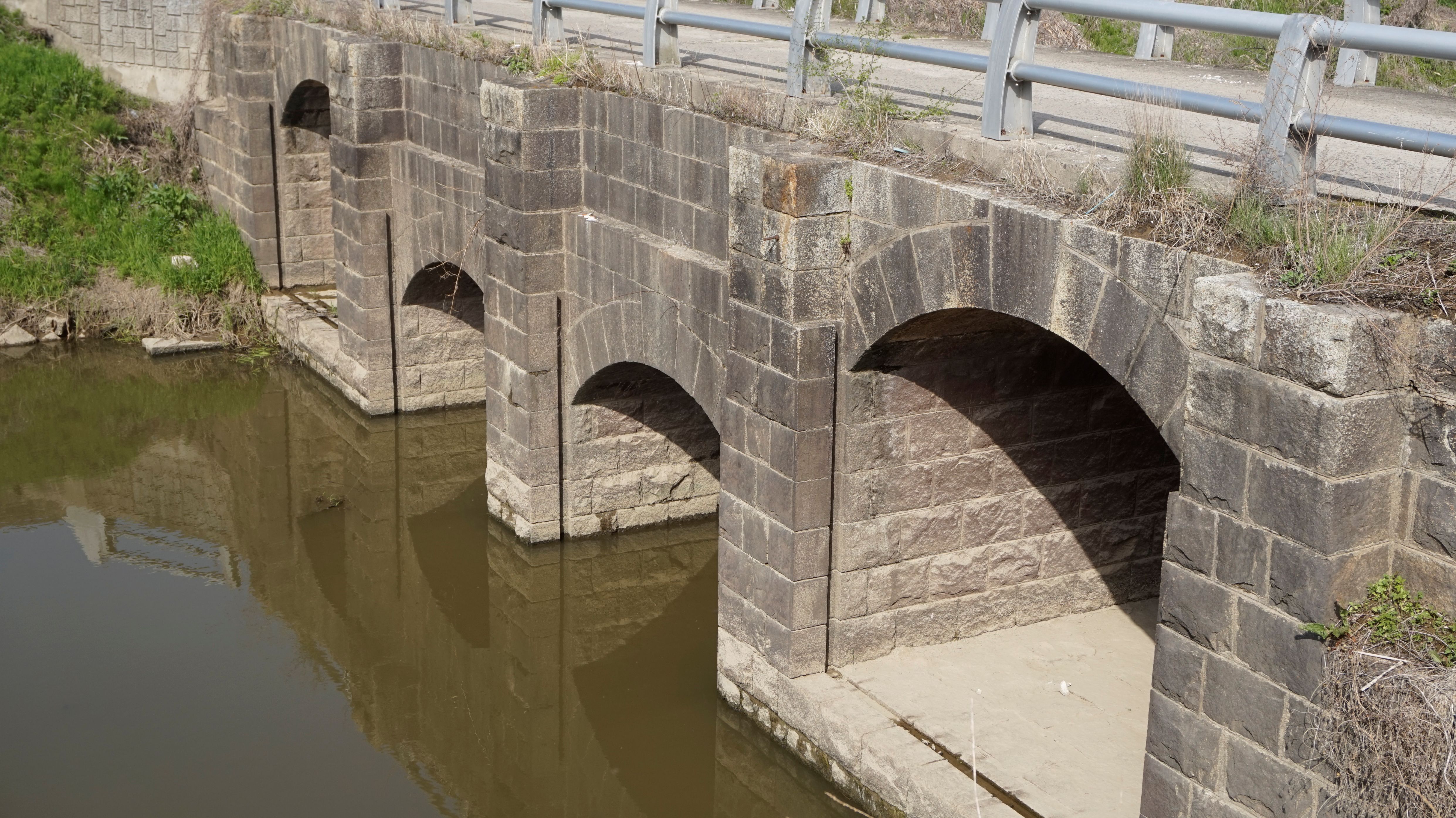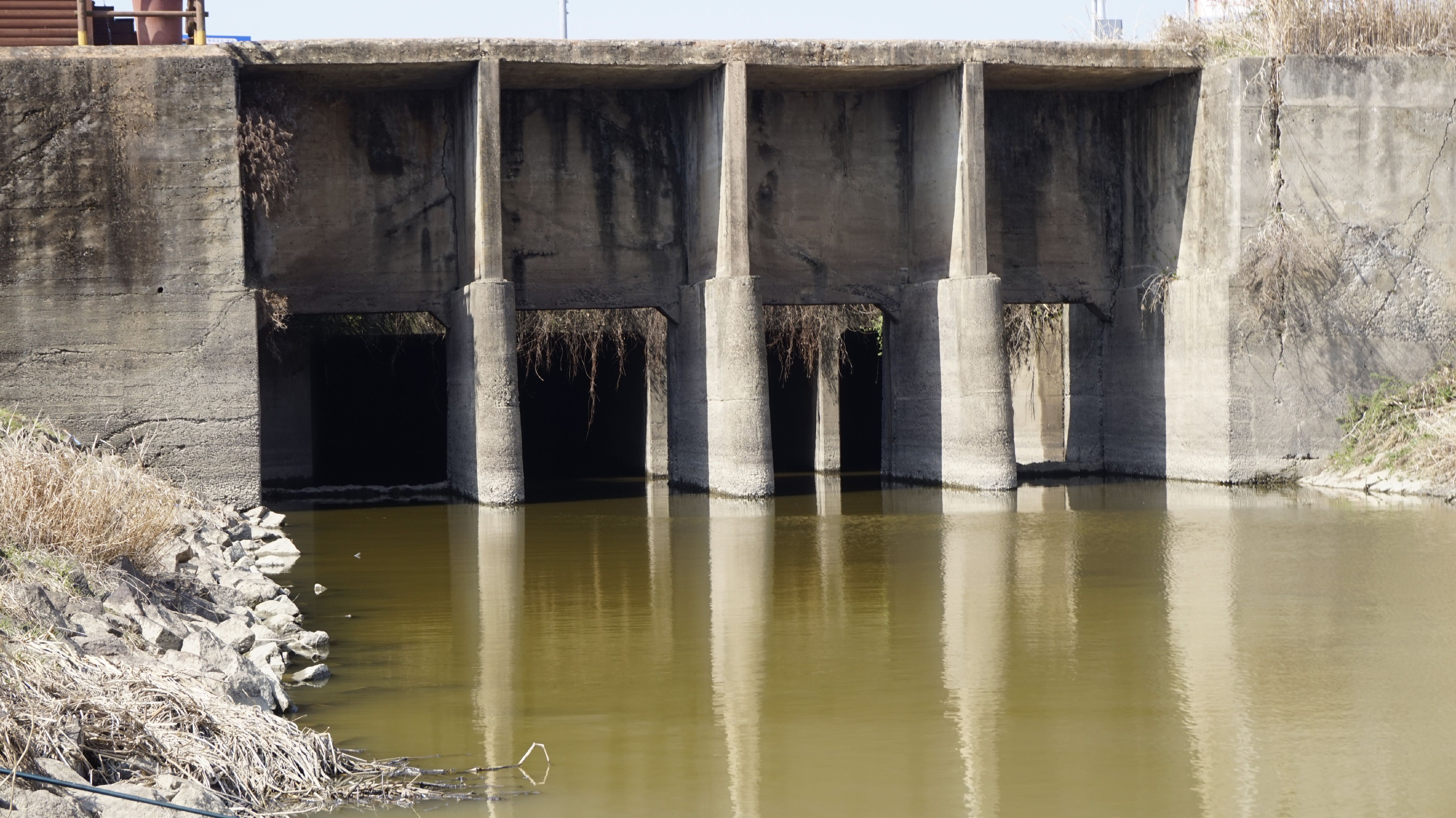 주남저수지를 향한 상류 쪽은 표면이 평평하고 별다른 시설이 없지만, 낙동강을 향하는 하류 쪽은 다릿발에 해당되는 부분이 20cm 정도 튀어나와 있습니다. 그리고 거기에는 제법 두꺼운 철판을 끼울 수 있도록 홈이 파여 있는 것입니다. 홍수가 졌을 때 하류에서부터 낙동강이 역류해 들지 못하도록 차단하는 수문이 있었던 것입니다. (계속)