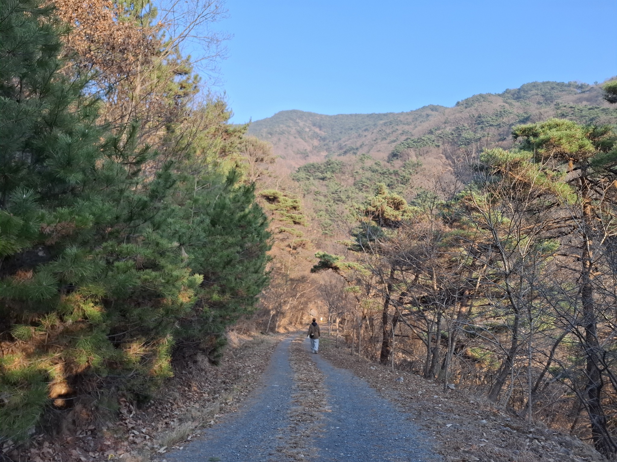 우리 집에서 직선으로 남남서쪽 3.5km 지점에 감천초등학교가 있다. 그 언저리에는 무학산을 두르는 임도가 마련되어 있다. 오르락내리락하는 굴곡이 있는 지형이지만 그다지 가파르지 않아 재미있게 산책을 할 수 있다.