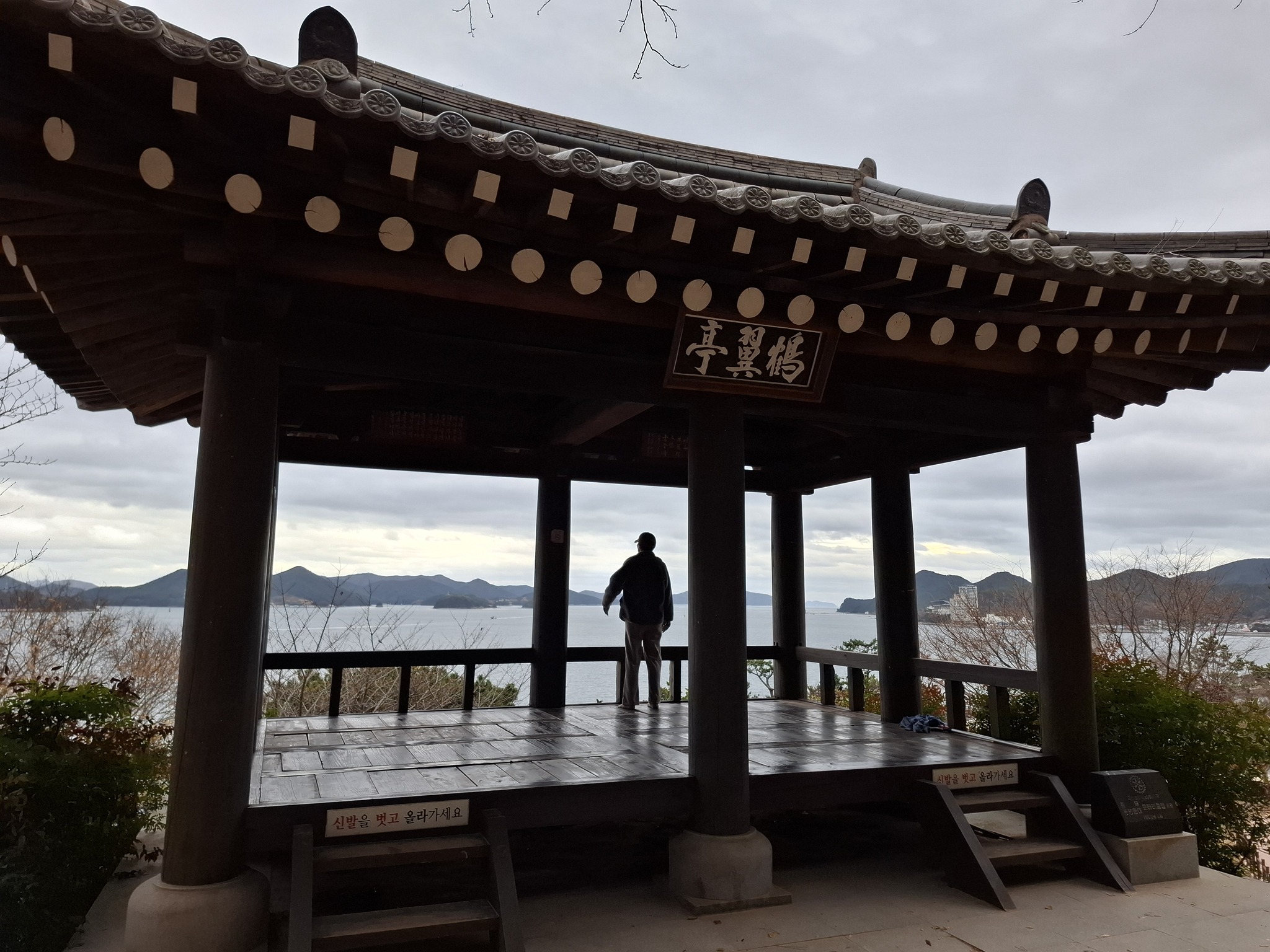 한산도는 아시는 그대로 1593년 이순신 장군이 삼도수군통제사로 임명되고 나서 설치했던 최초 통제영이 있는 곳이기도 하다. 아마 앞에 섬들 가운데 오른쪽으로 바라보이는 어디쯤이 거기일 것이다. 이순신 장군은 거기서도 매우 아팠다.